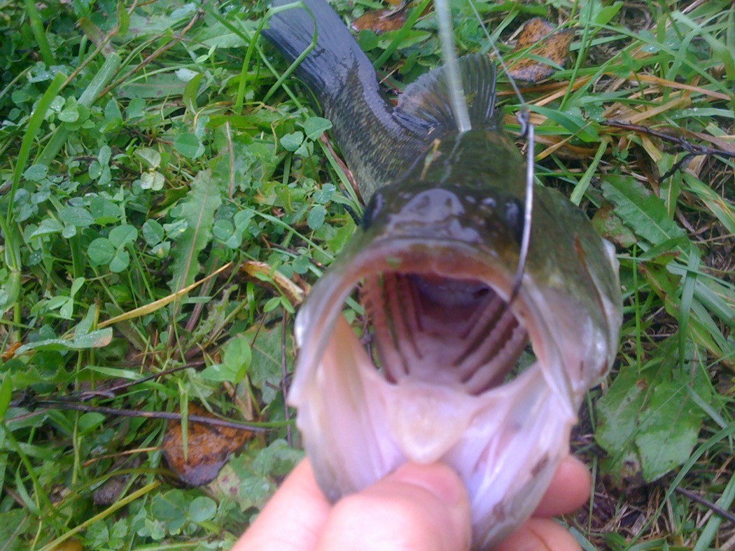 Arrivo a un’ansa in cui un albero caduto crea un riparo fatto apposta per enormi centarchidi. Lancio millimetrico e lascio affondare l’esca. Al secondo strappetto una bella botta blocca la gomma. Il pesce, scaltro come una volpe, corre dritto dritto verso un ramo galleggiante e ci si piazza sotto, immobile. Ma brutto dannato che non sei altro! Inizio a pompare il ramo per avvicinarlo finché la testa del bass spunta in superficie, salta e tirando un pochino gli faccio scavalcare l’ostacolo. Fiù, è andata bene. Mentre ancora lo sto pensando questo si infila a mille all’ora in un groviglio di alghe… Va bè, ma allora lo fai apposta. Cerco di avvicinarmi il più possibile ma il feltro dei miei scarponcini non va per niente d’accordo con l’erba bagnata e prendo una bella culata. Alla fine raggiungo la mandibola del pesce e metto fine a questa farsa alieutica. 40 cm di bass incazzatissimo che riguadagna veloce il suo nascondiglio dopo una foto al volo.