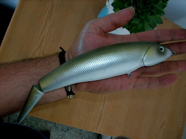 I make baits since 5 years ago. My first creation is still with me, it’s quite ridiculous: wood painted with children’s paints and nail polish…