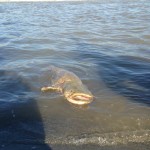 Solo che lo sento bloccato forse ho preso ancora una volta il fondo, il tempo di imprecare e la mia frizione parte sibilando come se avessi messo un 33 giri dei Megadeth a 45 giri. Jacopo vede la mia “cannetta” piegarsi in due, si alza e, nel farlo, anche lui vede quello che vedo io. A 30 metri da noi, una coda di almeno 70 cm esce dall’acqua. In un attimo è di fianco a me per assistermi.