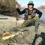 Dopo 5 minuti che sembrano durarne venti, mi rendo conto che gli sforzi per recuperarlo sono quasi vani ogni volta che abbasso la canna e riesco a recuperare un metro di filo, rialzandola il pesce me ne porta via 2, passo qualche altro minuto così cercando di “tenerlo” il più lontano possibile dalla corrente. La mia fortuna è che il bestione fluviale ha deciso di non lanciarsi in mezzo al fiume e farsi aiutare dalla corrente ma di muoversi a zig zag nei punti vicino ai sassi, vicino a riva, e di ancorarsi a questi tipo lottatore di sumo. Questa è una fortuna. Fosse entrato in corrente probabilmente avrei fatto qualche chilometro di sci d’acqua e mi sarei ritrovato nel grande fiume Po, o più semplicemente avrebbe spaccato qualcosa della mia attrezzatura.