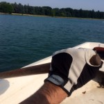 Salpato dal porto turistico del Bar Chalet, ho cominciato a remare fortissimo per raggiungere quelli che ritenevo essere i più affollati punti di raccolta dei boccaloni: il tratto di riva a Sud delle tribune, sul lato occidentale del bacino, e i ponti dell’Isola dei Fiori. Ma quei luoghi, che tante gioie hanno regalato in passato, questa volta si sono rivelati tirchi di emozioni. Lancia che ti lancia, non usciva un pesce che fosse uno. In fondo al finale corto (un metro di 0.40 e un finalino di fluorocarbon 0.30) avevo legato uno streamer nero. Il mio ragionamento da spinningofilo era: se c’è tanta luce – e ce n’era tantissima, con acqua limpida e 35 gradi in aria – meglio scegliere un’esca non troppo sgargiante. Ma i boccaloni non sempre ragionano come i pescatori. Così intorno alle 15, dopo innumerevoli tuffi nel lago per rinfrescarmi, mi decido a montare uno streamer bianco e giallo, con coda “tipo grub”. E così è cominciato il boccalone party. E io a quel party ero in lista, come il Pagante + Andrea Diprè.