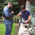 Spiegarmi i passaggi non basterà sicuramente a evitarmi di fare un casino incredibile cercando di inserire la coda nel mulinello. E soprattutto non mi aiuterà a capire come fare i nodi. Grazie a dio gli anonimi, come una balia con un bambino a cui vada cambiato il pannolino, mi hanno a turno aiutato con calma a sistemare tutti i miei casini e a spiegarmi i rudimenti della pesca a mosca. E mentre Franco mi armava uno streamer (spigandomi cosa fosse) Francis prende la sua prima trota.