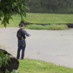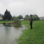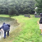 Muovendoci lungo l’argine del laghetto osservo entrambi gli anonimi e osservo i due diversi stili. Francis più funzionale e diretto e Franco più elegante e disteso. Chiedo informazioni sul movimento e piano piano i miei lanci sono sempre meno delle frustate. La mia esca, sempre lo streamer per ora, non cade a poca distanza con il finale che praticamente si attorciglia su se stesso, ma assomiglia sempre più a una linea dritta. Ho spazio per recuperare facendo lavorare l’esca sott’acqua.