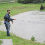 Finalmente anche Franco al mio fianco scappotta e passiamo una buona oretta sotto la pioggia a battere le sponde. Provando a migliorarmi sempre di più e cercando di prendere confidenza col lancio, lascio sempre più coda durante il movimento. Stolto, stolto Vitta. Perché nessuno mi ha detto di guardare non solo davanti ma anche dietro?