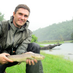 Il gioco è bello come la prima volta che ho provato lo spinning e non immagino nuovamente a cosa sto andando incontro. Sebbene non riesca a lanciare a più di due metri di distanza (credo a inizio giornata di essere sembrato più Indiana Jones con la frusta che un pescatore a mosca ), mi accorgo di avere una visuale diversa della mia esca sott’acqua. Mi sembra una pesca più tecnica, più di gioco e abilità con la preda ma soprattutto molto ma molto più sensibile. Certo di pesci disinteressati ne vedo molti sott’acqua, ma mi rendo conto di bloccarmi completamente quando una grossa ombra scusa si avvicina al mio streamerino che piano piano torna alla vicinissima riva. Non sono tecnicamente pronto nel caso abboccasse, ho la coda nella mano sinistra troppo lontana dalla destra per bloccare il filo e comunque per usare il mulinello (senza contare la matassa da recuperare che mi ritrovo tra i piedi). Ma sono comunque in grado di giocare con la mia esca per invogliare il pesce ad avvicinarsi, a cercare di sembrare una preda e non una semplice esca. E nel mio più grande stupore la trota abbocca. Francis subito mi fa tirare su la punta della canna per far stancare la trota, risolvendomi così anche il problema del recupero.