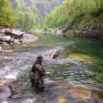 Con Luca ho pescato per pescare, per l’importanza della pesca in sé. Il Sesia ci ha regalato una bellissima giornata, condizioni molto molto difficili, ma alla fine qualche bella trota si è vista e di risate ne abbiamo fatte parecchie.