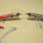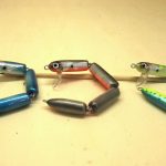 Per quanto mi riguarda, l’equilibrio dei pesi e le vibrazioni, sono due elementi basilari per la realizzazione di un artificiale, senza quelli avremmo solo dei meravigliosi soprammobili. Al secondo posto metterei forma e idrodinamica, che seppur importanti, non credo siano fondamentali per la creazione di un’esca catturante. Il colore non è un fattore da sottovalutare ma solo se interpretato nella giusta maniera. Voglio dire, non credo che al pesce interessi più di tanto se abbiamo utilizzato un giallo zolfo piuttosto che un giallo banana, quello che gli può interessare è quel colore, legato a una miriade di altri fattori quali, torbidità dell’acqua, maggiore o minore ossigenazione, natura del fondo, presenza o meno di luce ecc. Per quanto riguarda il realismo, credo che questo abbia importanza solo fuori dall’acqua.