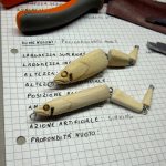 Beh innanzitutto un pezzettino di legno da modellare, poi materiali come acciaio inox, policarbonato, stucco, piombo, credo siano indispensabili per la creazione di un’esca artificiale. Così come lo sono le vernici in tutte le loro tipologie, per i processi successivi. Per quanto riguarda gli attrezzi direi che senza una morsa, della carta abrasiva, pinze di diversa tipologia e un seghetto, non si va da nessuna parte… a meno che non sia Lauri Rapala!!! Sull’imitazione da realizzare di certo qualcosa di molto semplice (cosa che non ho fatto io…), più che altro per iniziare a capire le dinamiche che regolano il movimento di un artificiale. Direi che un semplicissimo e pericolosissimo 7 cm possa andar bene.