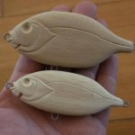 Il mio primo pensiero è rivolto al pesce che vorrei insidiare, quindi faccio uno schizzo dell’eventuale preda. Ma tecnicamente procedo in questo modo: disegno direttamente sul legno (se si tratta di nuovi modelli… altrimenti dima), creo una feritoia per alloggiare l’armatura e la paletta (se c’è), sagomo il pezzo, incollo l’armatura, piombo l’esca, la stucco, passo i solventi di protezione per il legno, alla fine colori e resinatura.